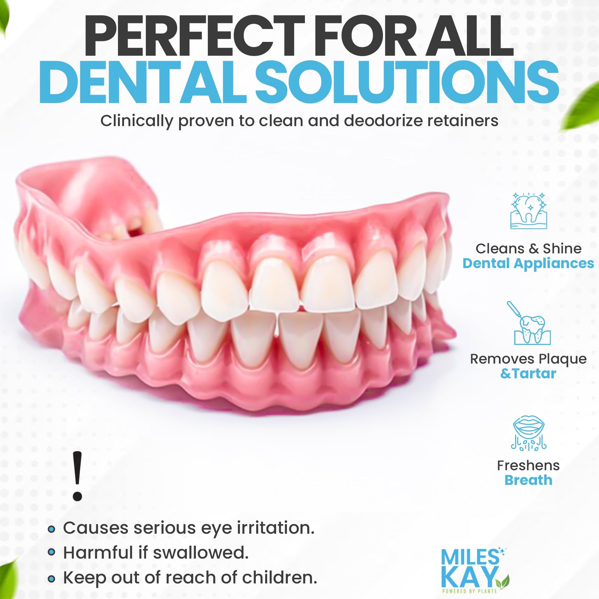 - Kills Bacteria & Removes Stains. Proven formula eliminates bacteria, odors, and tough stains while preserving the quality of your dental appliances.