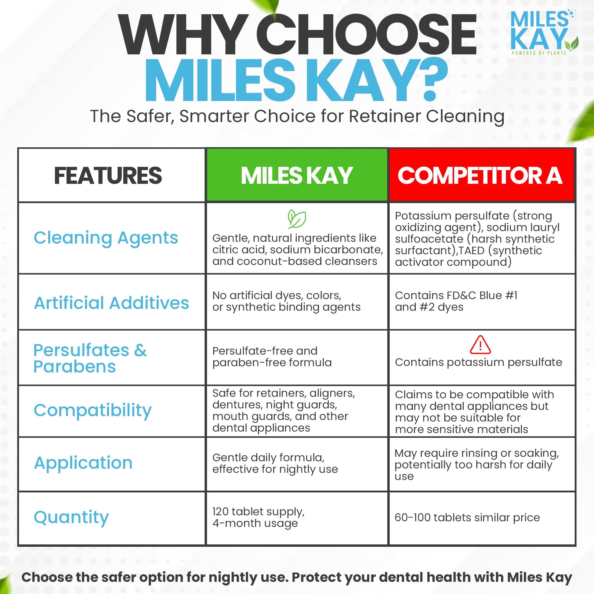 Retainer Cleaner 120 Tablets (4-Month Supply) – Keep Your Retainer Fresh, Retainer Bright and Stain-Free. Cleaning Tablets for Retainers, Ultrasonic & Dental Pod Compatible. Fresh Mint | Miles Kay